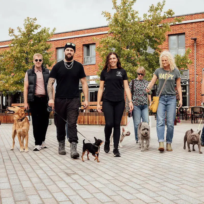 Structured group walks designed to improve social skills and behaviour around other dogs and people.